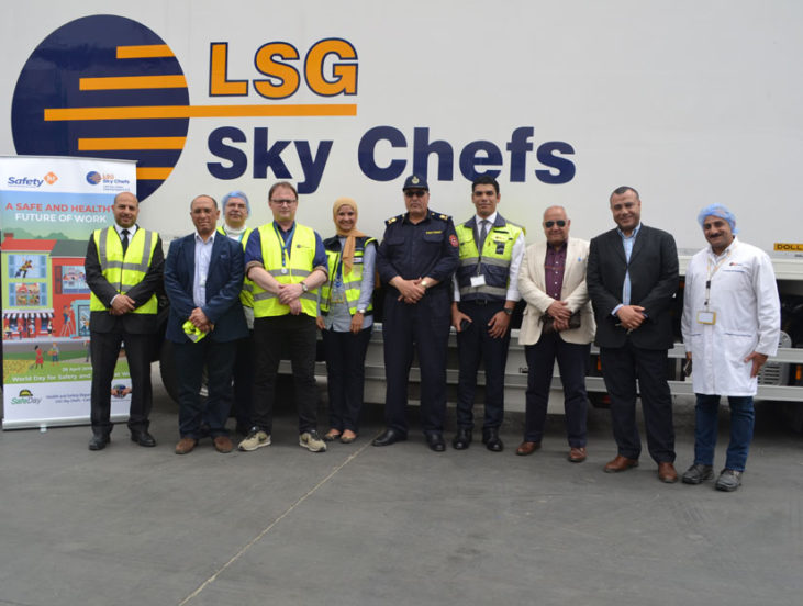 On May 2, our joint venture LSG Sky Chefs in Cairo held their own Global Safety Day event at the facility, where external stakeholders were present. Participants included Ahemd El Khaiary, Corporate Safety Director Egypt Air, Atef Saleh, Fire Chief Cairo Airport, Gamal El Gindy, Quality Manager Cairo Airport and Mohamed Saad, QHSE (Quality, Health, Safety and Environment) Inspection Department Manager Cairo airport.